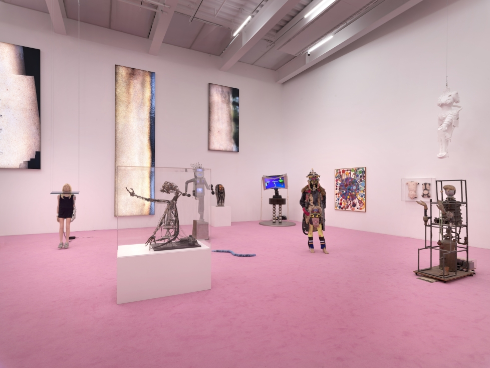 I øverste etasje, som huser «Hall of Robots», bryter den allerede skjøre kontinuiteten helt sammen. Rommet er dekket i lyserosa teppe og fylt med et menasjeri av androider, mekaniske vesener og lekne hybrider, blant annet figurmodellen til E.T. fra Spielberg-filmen med samme navn og H.R. Gigers skulptur som inspirerte Alien-skapningen i filmene. Rommet ligner mer et filmstudiomuseum eller en fornøyelsespark enn en kunststutstilling og blir en litt for støyende ramme for et av høydepunktene i utstillingen: tre vertikale lysbokser av Seth Price som viser forstørrede utsnitt av menneskehud, digitalt bearbeidet til overflaten vipper mellom det organiske og det syntetiske (Bob, Danny og Untitled, alle 2015). Huden blir landskap, skjerm, materiale og gir en stille påminnelse om at kroppen vår alltid allerede er mediert, at vi uunngåelig ser den gjennom filtre og algoritmer.