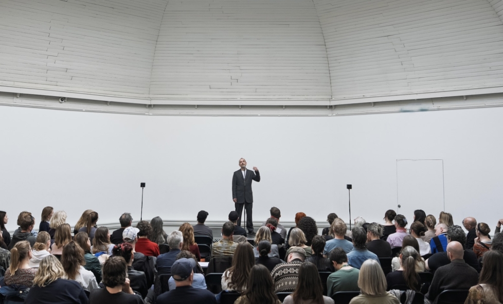 Lidt i samme boldgade var britiske Ed Atkins Poor Devil, der illustrerede, hvor enkel en performance også kan være. Fra scenen i et hvidt rum fremførte han den samme helt korte monolog om vejrsituationen et utal af gange efter hinanden med forskellig intonation og tryk. Undervejs føltes det som om, sproget nærmest opløste sig, og jeg blev mere og mere i tvivl om, hvordan det omtalte vejr så egentlig var. Slutningen var et lille mirakel af den slags, man kun oplever, når man er fysisk sammen i et rum. Atkins begyndte at synge, alene og helt sårbart, og pludselig rejste der sig et flerstemmigt kor fra publikum. Totalt overrumplende, som et tæt kram fra et kærligt fællesskab. Alt det, performance kan, når det er godt.