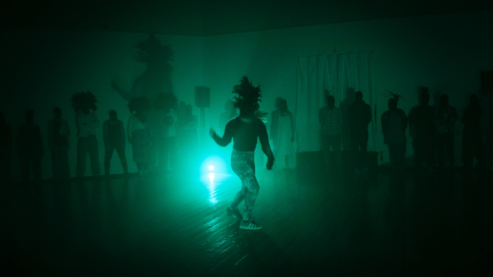 Fredag aften leverede duoen bag Lilith Performance Studio i Malmø, Elin Lundgren og Petter Petterson, en slags sortklædt vrangbillede af Weile Kjærs eskapisme. Vi efterlod telefonerne i garderoben, før vi enkeltvis blev ført ind i et forlokale, hvor vi blev anonymiseret med sorte elefanthuer og forskellige hovedbeklædninger af sorte fjer. Inde i det ottekantede lokale på Den Frie, hvor performancen fandt sted, var høj, elektronisk musik og dunkel grønlig belysning. Anonymiserede personer, en blanding af performere og det publikum, der ikke længere lod sig skelne fra hinanden, stod afventende langs væggene, og herfra begyndte en slags ritualiseret fest.