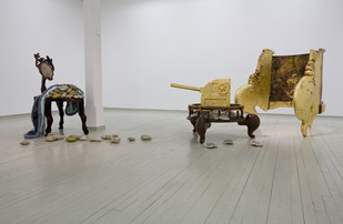 Om utstillingskonseptet er utdatert, finnes det likevel flere enkeltverker å glede seg over. Bjørn Breistøl Båsens underfundige, surrealistiske installasjon «Hunter’s Noon» (2007-09) ser ved første øyekast ut som en ommøblert stue, forlatt av barna etter lek hos sine rike besteforeldre. Stuen har blitt omgjort til en jaktscene, hvor en kanon retter sitt skyts mot et flyktende rådyr som ser seg skremt tilbake. Til ammunisjon har kanonen et lager av små puter. Elementene ser ut som modifiserte barokke møbler. Installasjonens virkelighetsforskyvning er leken og tar blant annet opp i seg menneskets stadige søken etter nye trofeer og et mer komfortabelt liv.
