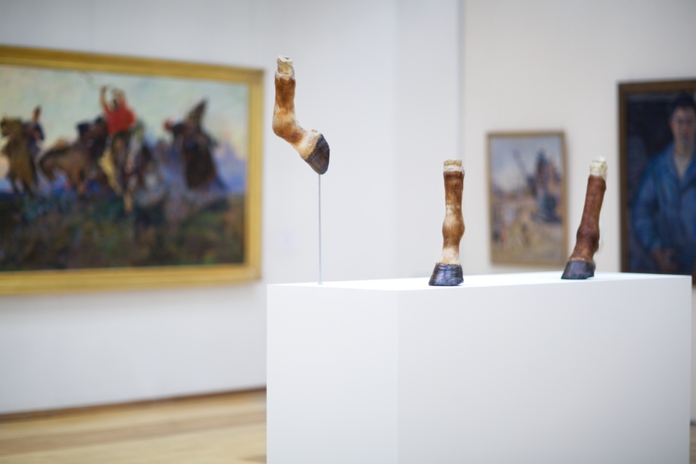 Den pressgrupp jag tillhörde möttes i foajén av Smagulov och av museets konstnärliga chef Merujert Kalieva, som samtidigt äger och driver galleriet Aspan i Almaty. Jag fick också ett pratstund med museets lettiska chefskurator Inga Lāce, ansvarig för samlingsutställningen, med Almagul Menlibajeva, den i Berlin och Almaty bosatta kazakiska konstnären vars retrospektiv I Understand Everything fick inviga museets utställningsverksamhet, och med utställningens i Bangkok bosatta kurator Gridthiya Gaweewong.