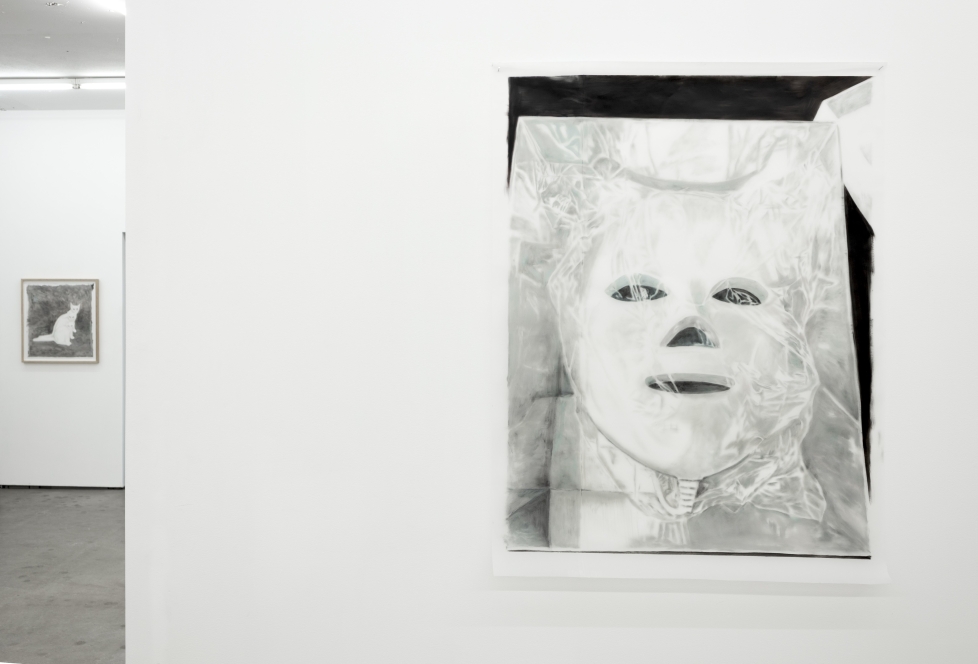 Maleriene hennes er godt utførte, men best og mest overraskende synes jeg likevel denne hemmelighetsfulle maskeraden fungerer i I Imagine Generic Life (2024). De vagt subjektive og psykologiserte observasjonene, utsnitt dekket av gardiner, kontres her av en realistisk løsreven maske – uten åpenbar kontekst og fortelling. Masken er smågrotesk med gapende tomme hull for øyne, nese og munn. Angivelig brukes den i skjønnhetsindustrien – hard plast over ansiktet for å forynge og forbedre hudkvaliteten. Denne antiseptiske og glatte hardplast-investeringen i fasade, en dæsj science fiction for forbrukeren, blander seg assosiativt med masken som eldgammelt kulturelt og rituelt fenomen.