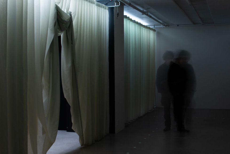 All the same bright presenteres som en lydinstallasjon, men de – forsiktig sagt – få visuelle grepene som er tatt er på kanten til å være umerkelige, og begrepsmessig er det like riktig å kalle det for en lydinstallasjon hvis man har en radio på kjøkkenet. Draperier som dekker for den delen av rommet hvor dette foregår, og en benk å sitte på. Rett utenfor denne avgrensningen er det plassert en hvit stele på et par meters høyde, hvor det siver ut hvitt lys på sidene. Der er ellers ikke mye til lys her, underetasjen til kunsthallen er – som så ofte før – liggende i halvmørke. Denne komponenten blir jo, enten man vil det eller ikke, veldig viktig, der den står alene og brummer vagt i den der like irriterte som irriterende tonen som kan oppstå når den hundre år gamle lyspæren i kjellerboden sier fra at nå er det snart nok, eller – oftere i min line of business – når man ser et videoarbeid hvor folk i kroppsstrømper hengir seg til umotiverte og langsomme bevegelser i et tomt rom. Det er for så vidt greit; du hører det bare når du står nært nok.