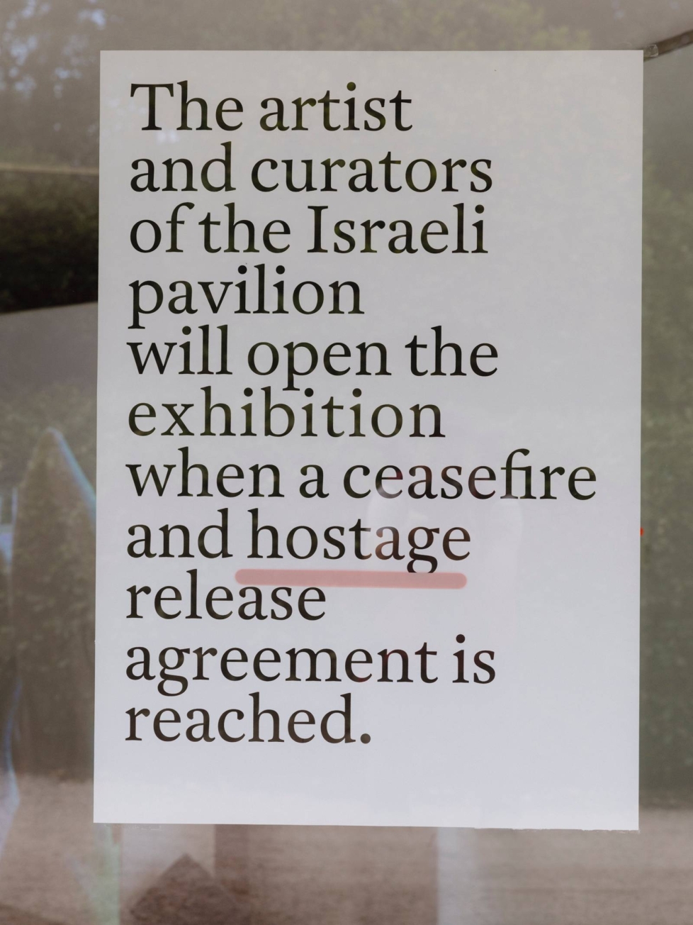 Samtidig mobiliserer ANGA (Art Not Genocide Alliance), en anonym sammenslutning av kunstnere, kuratorer, skribenter og kulturarbeidere, for å få Israel utestengt fra biennalen på grunn av krigen i Gaza. I 2024 samlet de mer enn 24 000 underskrifter, og resultatet var at den israelske paviljongen holdt stengt under forrige biennale. Siden i fjor høst har ANGA sirkulert et åpent brev der de gjentar kravet om en utestengelse av Israel og varsler en ny boikottaksjon.