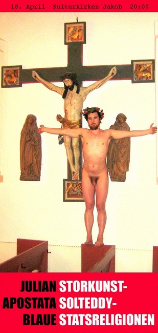 Les også Julian Apostata Blaues tidligere artikkel her på kunstkritikk.no, en kommentar til Matteuspasjonen av Sebastian Hartmann, 13.09.08, Nationaltheatret, i en selvkritisk refleksjon over artikkelforfatterens egen performance, 29.08.08, Kunstnernes Hus.