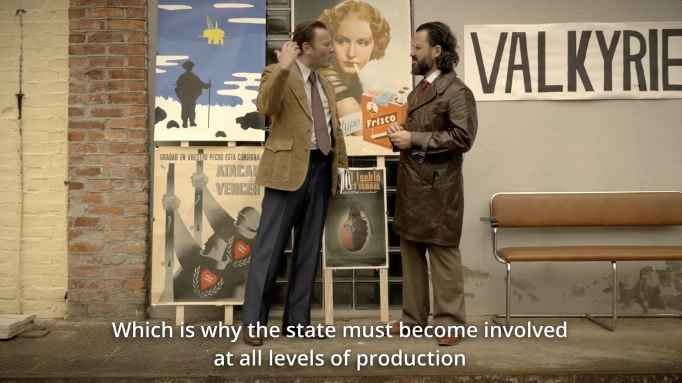 Denne snurrige scenen er hentet fra Snake Oil: An Agit Soap, den tredje i en serie Nasjonale episoder av kunstnerkollektivet – eller den «kunstneriske personaen», som de selv titulerer seg – Rose Hammer. I 2019 og 2020 ble henholdsvis teaterforestillingen Grini og Norges mulige framtid og hørespillserien The Radical Flu presentert som en del av Oslobiennalen. Selv om biennalen nå er en saga blott, har kollektivet fortsatt, og søndag 25. januar ble Snake Oil vist på Kunstnernes Hus kino. Når Rose Hammer går til filmen for første gang, møter den hardtslående agit-prop-tradisjonen såpeoperaens melodramatiske flate.