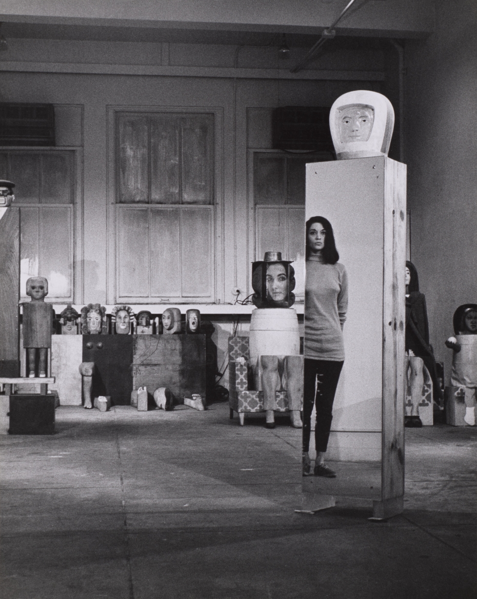 Jeg har set så mange fotografier af Marisols skulpturer, men aldrig tænkt over hvordan det ville være at opleve dem fysisk i et rum. At træde ind mellem alle de karakterer, føles som at ankomme til en scene på et teater, hvor stykket har været i gang længe og skuespillerne har så travlt, at de ikke opdager, at publikum i en rus af nysgerrighed har forvildet sig op til dem. Det, der foregår mellem skulpturerne, er ikke bare en teatralsk farveeksplosion, der får en til at smile, Marisols figurer og situationer minder mig om The Knife-sangen «Silent Shout», det hele råber og er stille på samme tid.